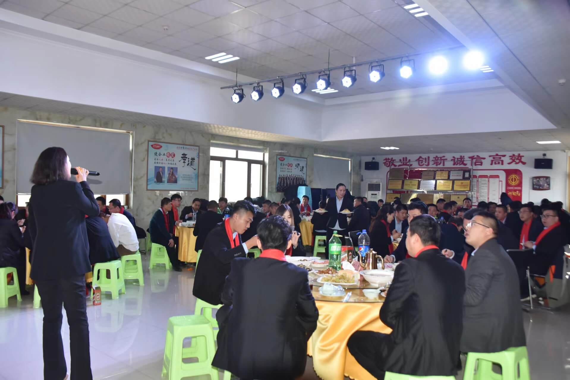 团拜会在雄壮的国歌声中拉开帷幕。集团总经理王震、营销总监刁兴广、生产总监潘兆芳及各分公司总经理向集团所有家人拜年,致以节日的问候和最美好的祝福。