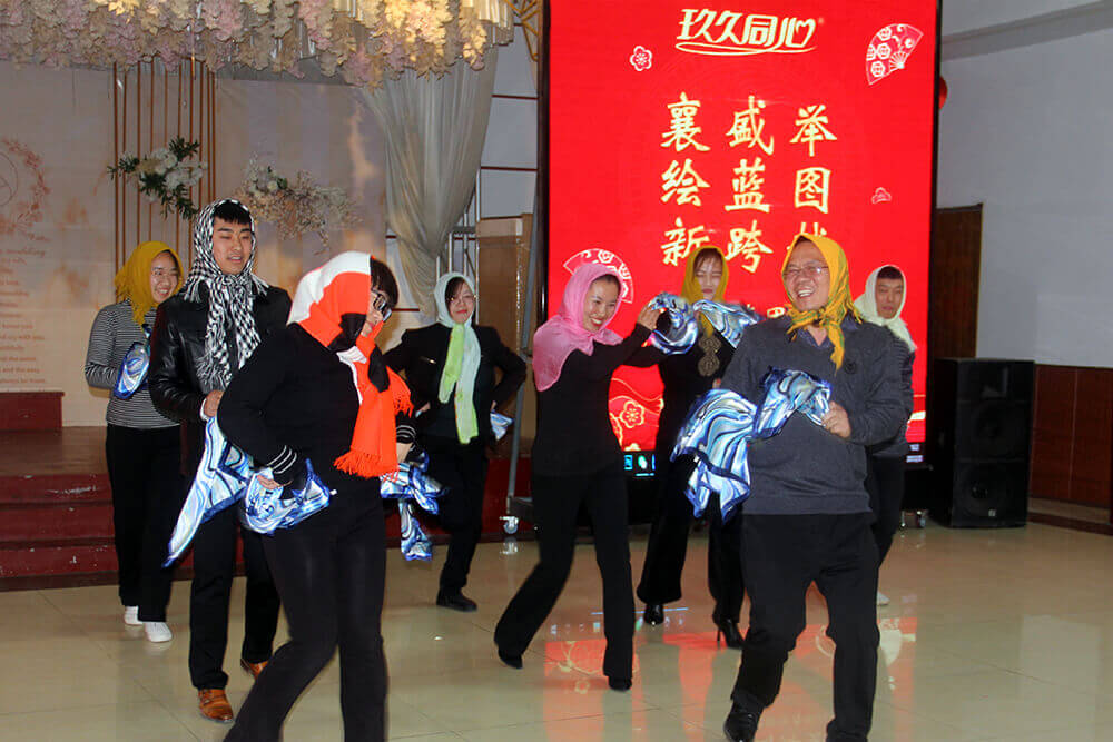 为增加团拜会的喜庆气氛,集团员工还自编自演了精彩的文艺节目。生产中心带来的舞蹈《抓钱舞》,生产中心采购部及仓储部带来的舞蹈串烧,仓储部王天龙、物流部赵湘鲁带来的歌曲《父亲》,物流部赵玉成带来的《你的样子》等节目,把团拜会现场气氛带到了高潮。丰盛的晚餐也让“吃货们”大快朵颐,大家频频举杯同庆,共祝集团牛年牛气冲天!
