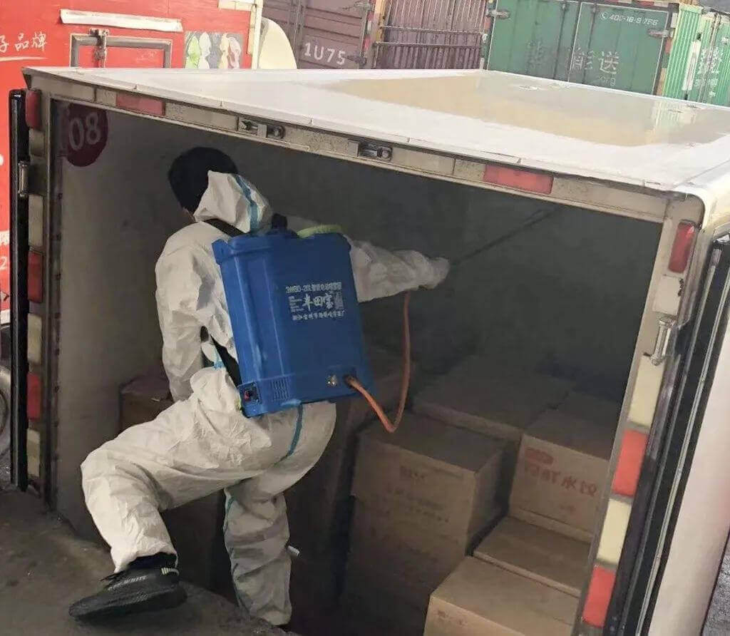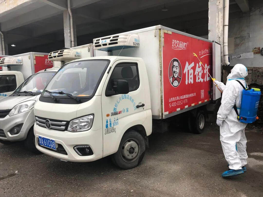 物流团队每日对车队全部车辆进行消毒