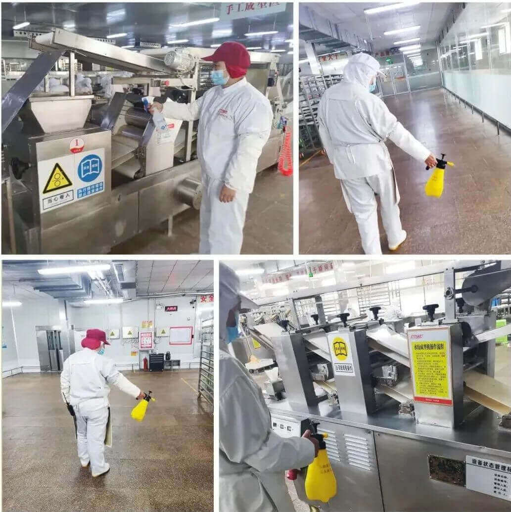 其四 ,生产车间的工人在每日早会上会做健康检查 ,确保无发烧感冒受伤等情况。进入车间前经过更衣系统消毒,工作过程中每两小时会对人员进行酒精消毒 ,下班后对车间进行彻底的清理消毒,工器具 、地面、接触面、沟槽等使用酒精消毒 ,车间环境使用臭氧及紫外线消毒。